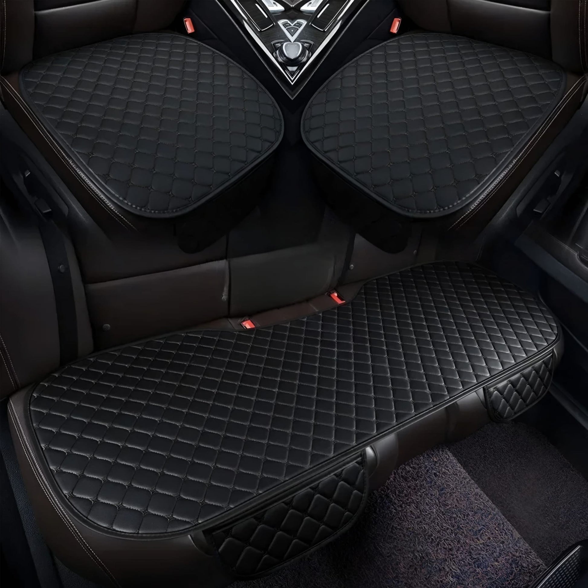 Prestige Serisi – 3 Parça Oto Koltuk Oturma Minderi Seti | Siyah & Siyah Dikişli | CarSeat Lüx